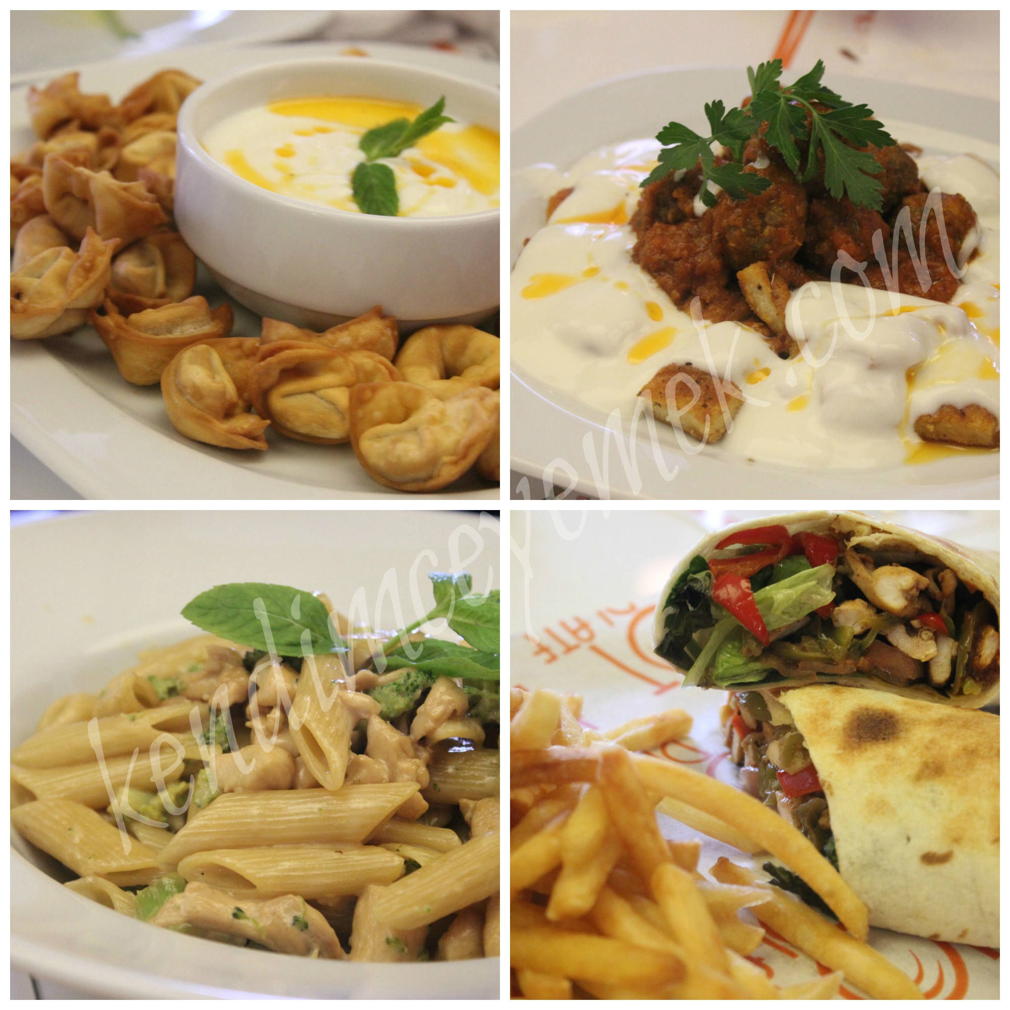 Acı seviyorsanız acı soslu Meksika dürüm tam size göre.Sıcak ve çıtır lavaşın içinde o acılı bol biberli tavuk nefisti.Diğer tattığımız lezzetler arasında vejeteryan ince hamur pizza, yoğurtlu köfte, tavuk schnitzel, tavuk, brokoli, krema ve soya soslu penne makarna, köz patlıcanlı ve domatesli makarna liste bu şekilde uzayıp gitti.